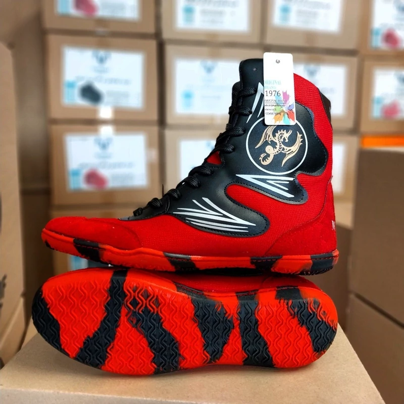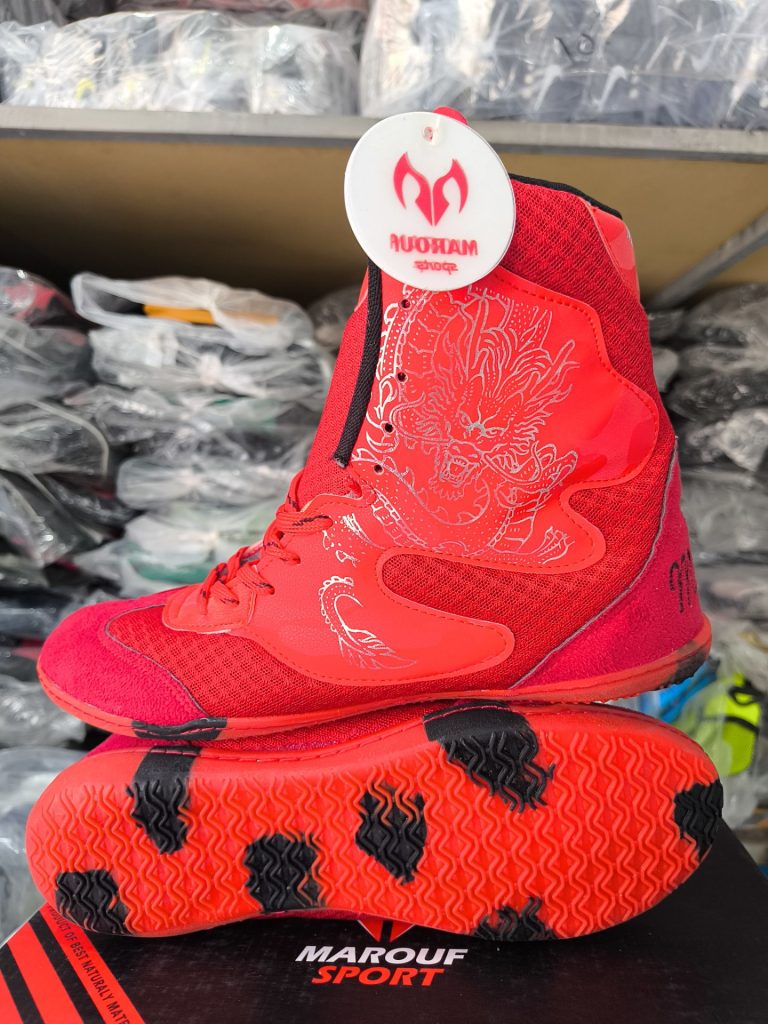 کفش حرفه ای بوکس زیره لاستیک طرح دراگون رنگ قرمز