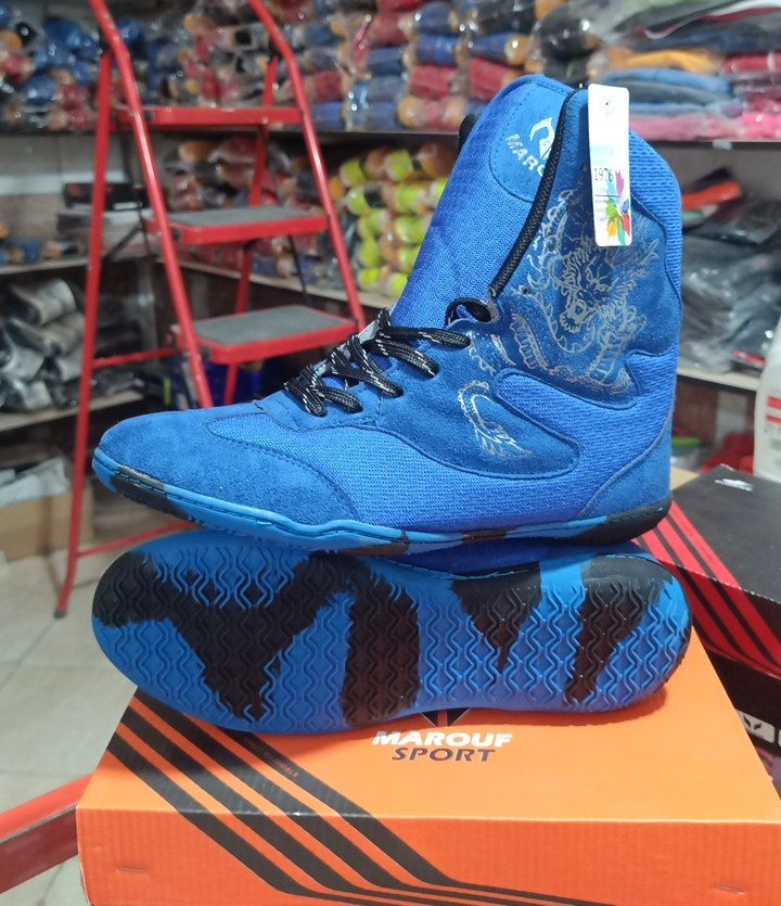 کفش حرفه ای بوکس زیره لاستیک طرح دراگون رنگ آبی
