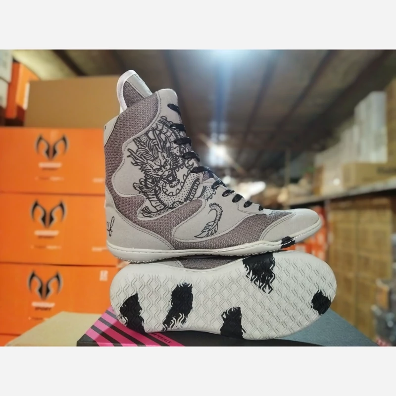 کفش حرفه ای بوکس طرح اژدها رنگ طوسی