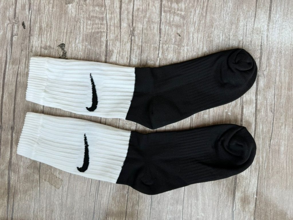 جوراب فوتبال ساق بلند طرح نایک رنگ سفید کف مشکی
