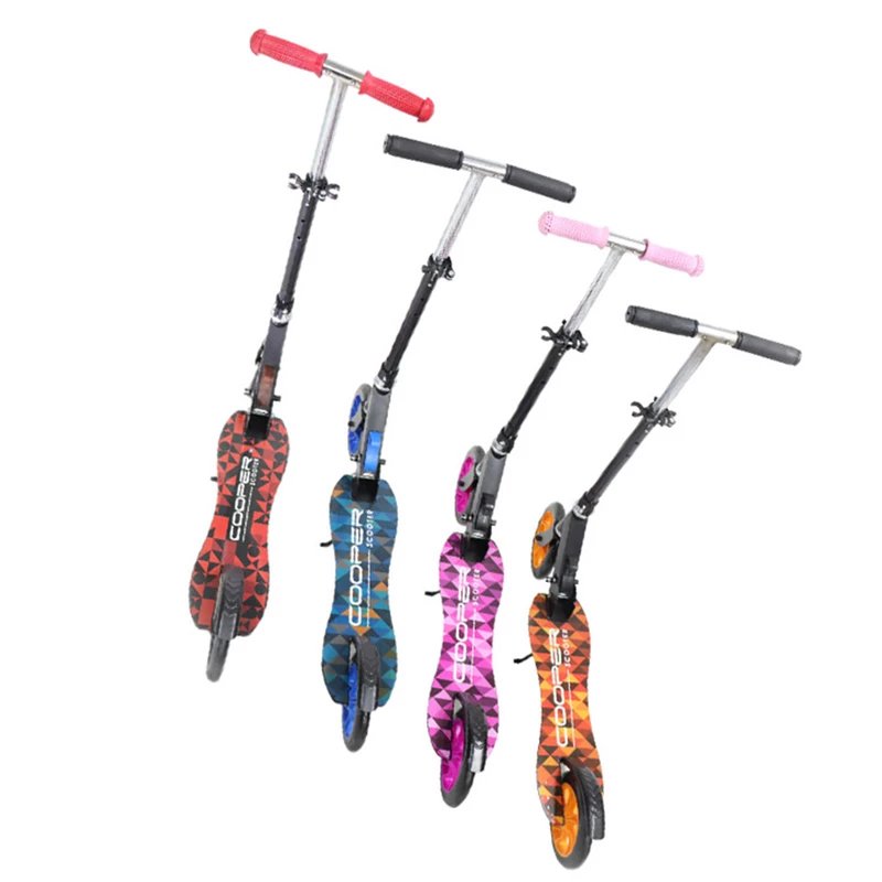 «اسکوتر دوچرخ مدل کوپر Cooper انتخابی مناسب و هیجان‌انگیز برای لذت بردن از این ورزش مهیج است. این اسکوتر از بدنه‌ای آلومینیومی تشکیل‌شده که هم از ایجاد زنگ‌زدگی جلوگیری کرده هم دوام و مقاومت اسکوتر را در برابر ضربه و فشار نیز محافظت خواهد کرد. آلومینیوم به دلیل استحکامی که دارد عمری طولانی نیز به این اسکوتر بخشیده است. این اسکوتر دارای فناوری بوده که می‌توانید به‌راحتی فرمانش را به 4 حالت مختلف نیز تنظیم کرده و راحتی بیشتری را برای خود مهیا کنید.اسکوتر دارای مزیت هایی میباشد که آن را تسبت ب دیگر اسکوترهای موجود متمایز میکند.یکی از مزیت های این اسکوتر جنس آن میباشد،مزیت دیگر آن نیز دو کمک فنر تعبیه شده در جولو و کفه ی اسکوتر که باعث نرم شدن و دفع ضربه های کف زمین و همچنین تحمل وزن بیشتر میباشد،مزیت دیگر آن چرخ225 میلی متری آن میباشد که با پهنای بیشتر خود باعث طول عمر بیشتر و همچنین نرمی و زیبایی بیشتر میشود.گفتنی است که اسکوتر را می‌توانید تا کرده و در اتومبیل یا جای مورد نظرتان قرار دهید. این را باید گفت که جنس دستگیره فرمان آن از پلاستیک بوده که از ایجاد تعریق جلوگیری کرده همچنین در استفاده طولانی‌ مدت پاره یا ساییده نخواهد شد.همچنین در قسمت گلگیر عقب اسکوتر یک چراغ شبرنگ قرار گرفته که دلر تاریکی شب برق میزند و باعث میشود در شب نیز دیده شود. این اسکوتر انتخاب مناسبی برای ورزش کردن و تفریح بوده تا از اوقات فراغت لذت ببرید. همچنین این اسکوتر دارای تحمل وزن تا 100 کیلوگرم نیز میباشد.