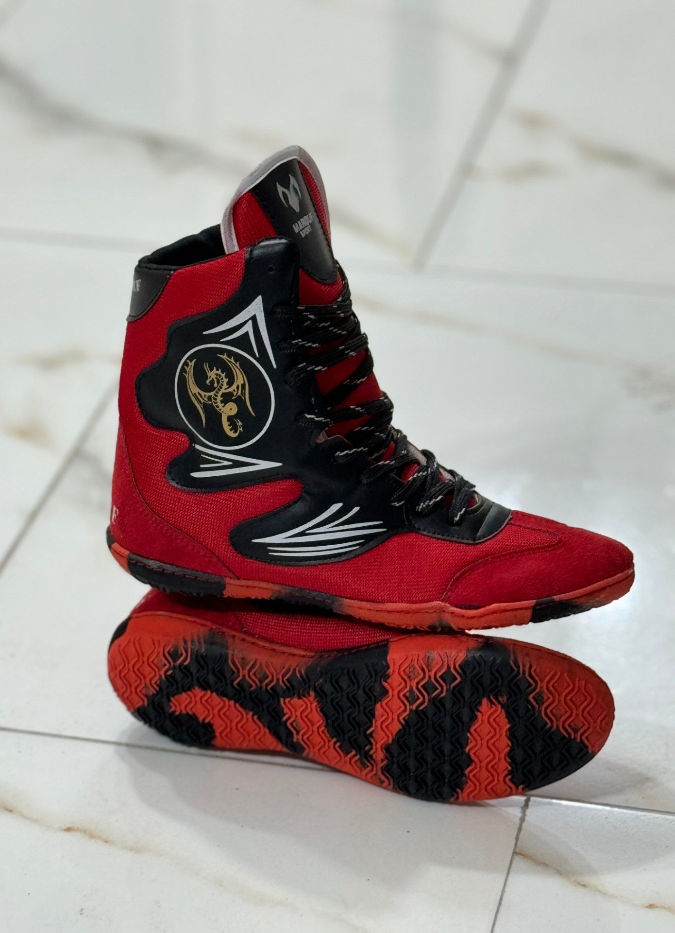 کفش حرفه ای بوکس زیره لاستیک طرح دراگون رنگ قرمز