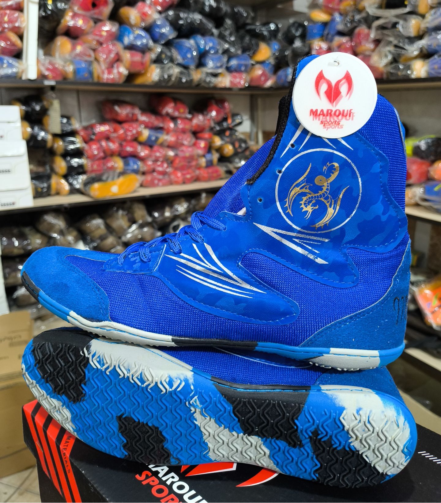 کفش بوکس طرح اژدها برند معروف رنگ آبی