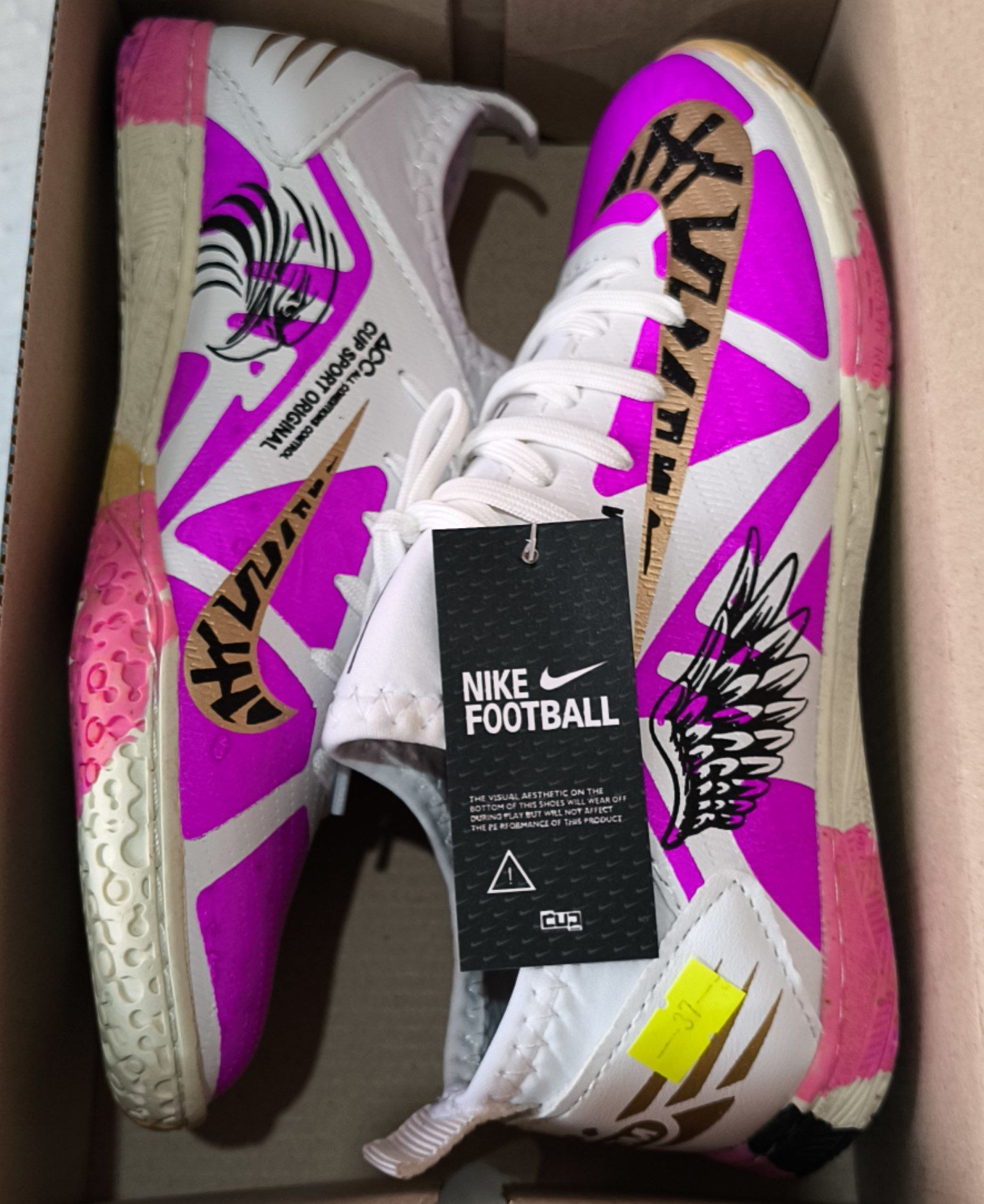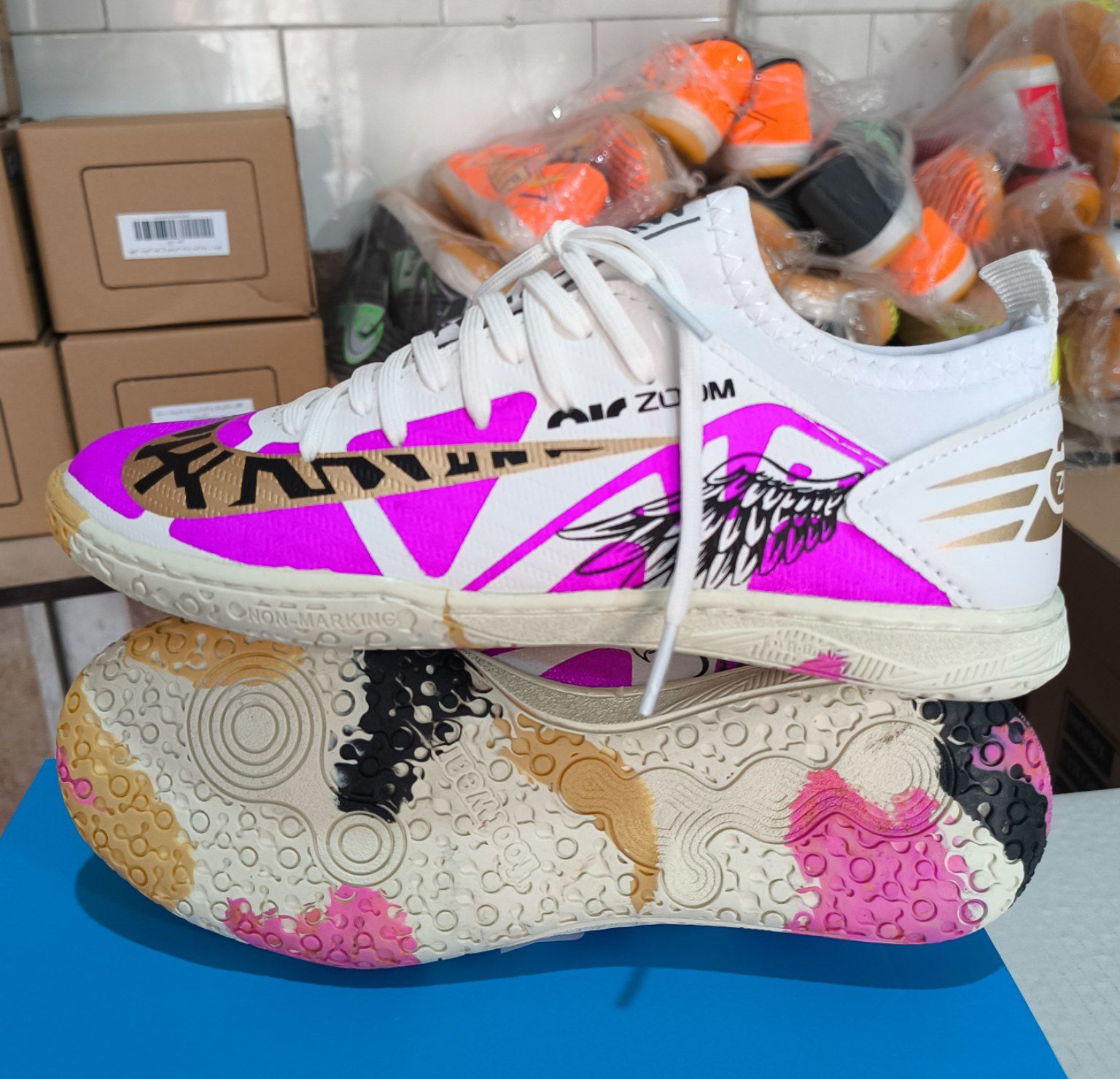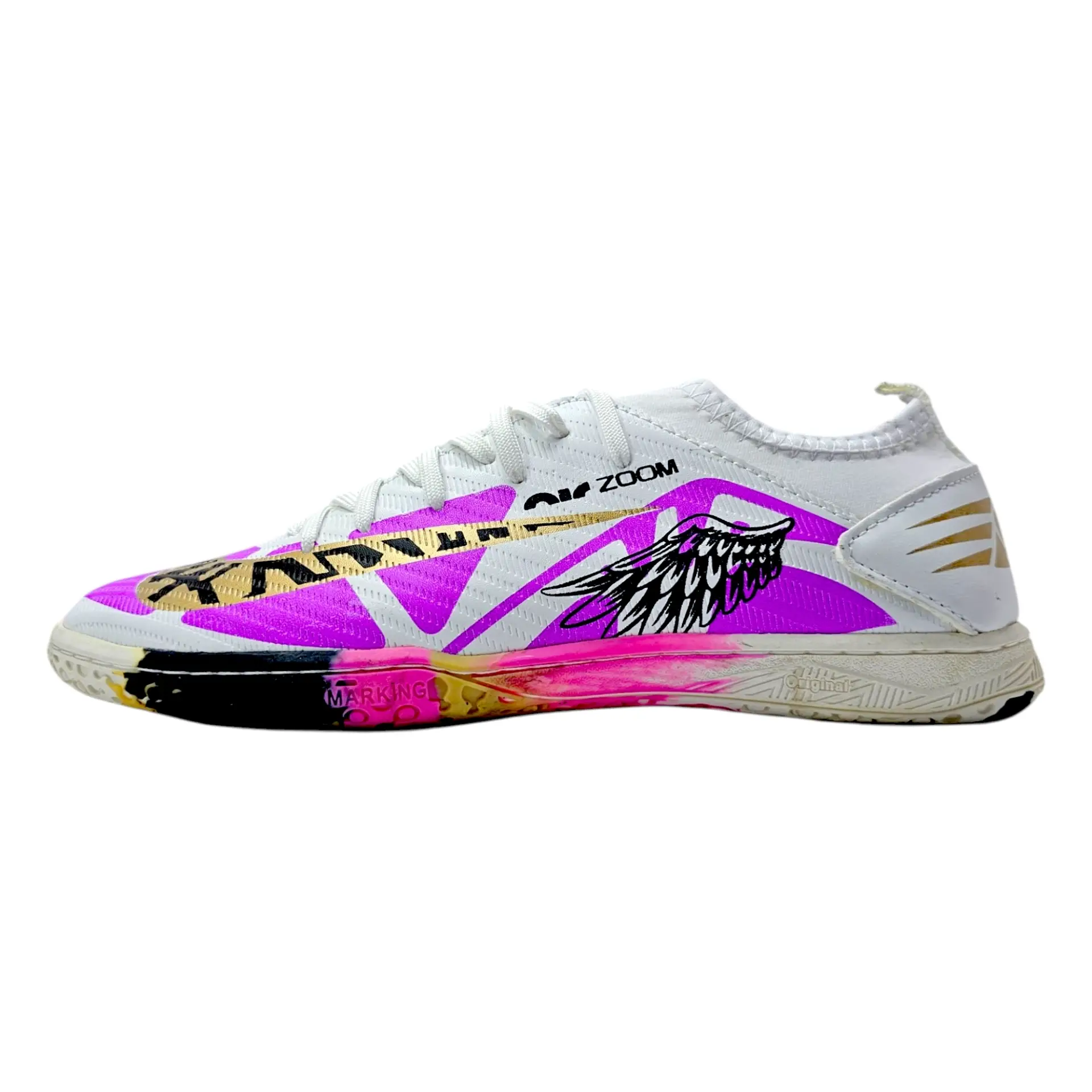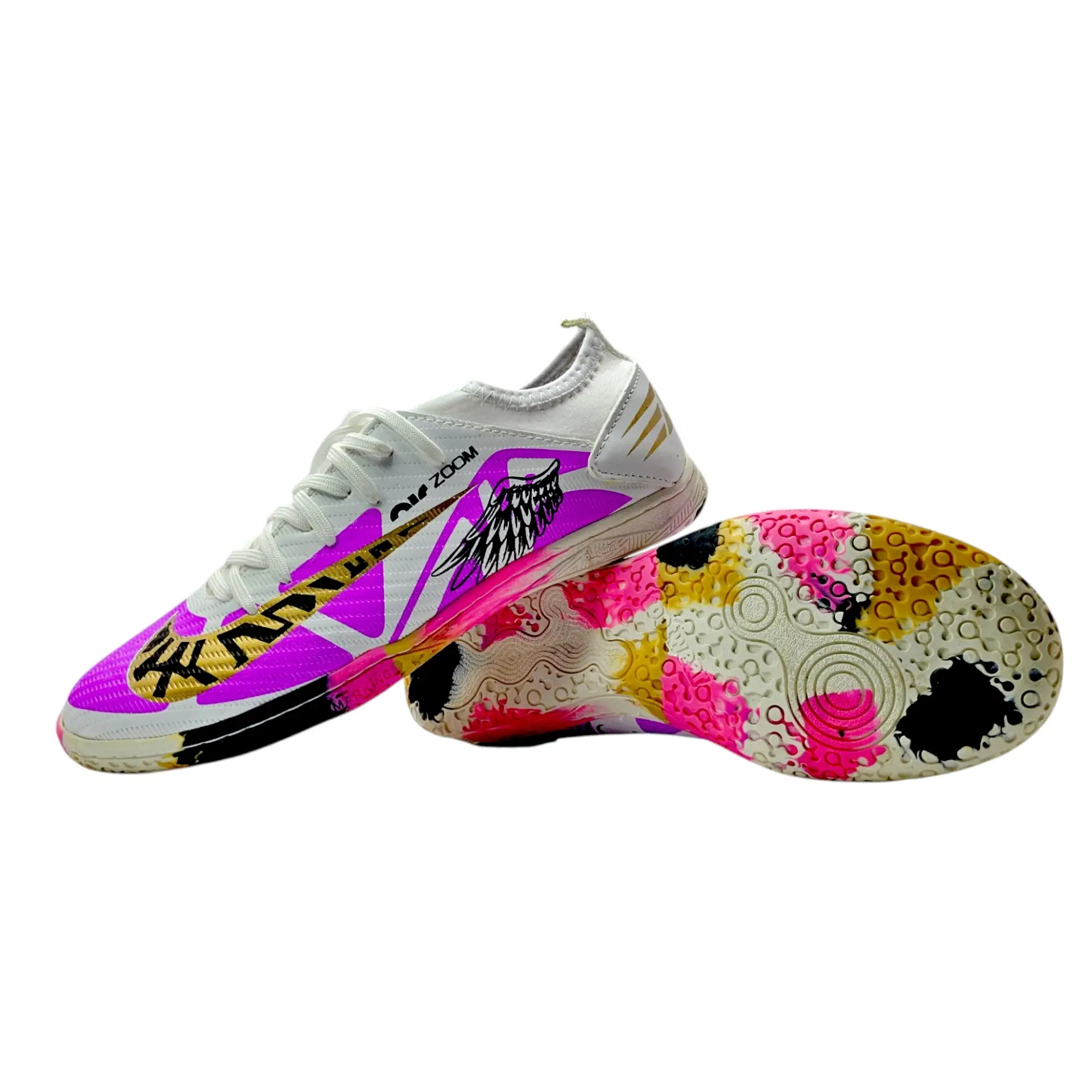 کفش فوتسال زیره لاستیک مدل عقاب رنگ سفید بنفش